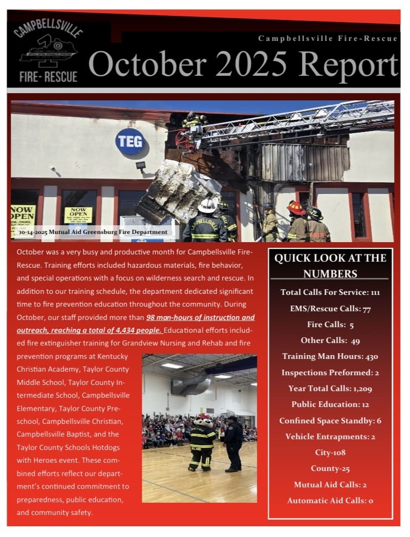 Campbellsville Fire-Rescue Monthly Report: October 2025